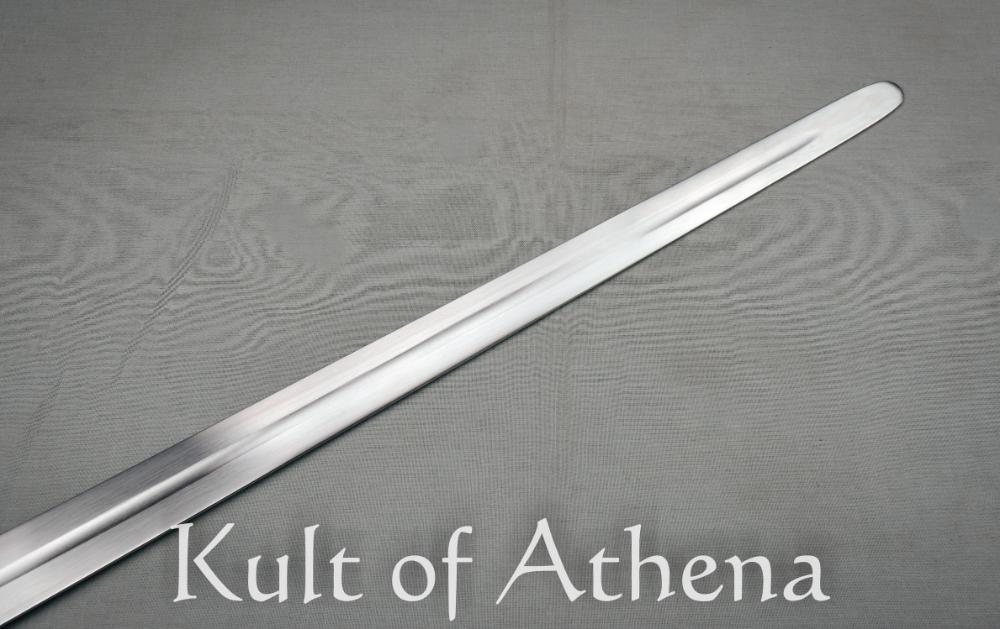This Viking sword from Viktor Berbekucz of Hungary is is forged from CRV4 / 51CrV4 high carbon steel and is a resilient spring steel known for its toughness and flexibility. Measuring 27 7/16 inches, the blade follows the classic Viking sword profile with a wide fuller running along much of its length. This fuller reduces excess weight while preserving structural strength, helping the sword move quickly and smoothly during cutting actions. The tang is securely peened over the pommel, providing a durable and historically authentic hilt construction.