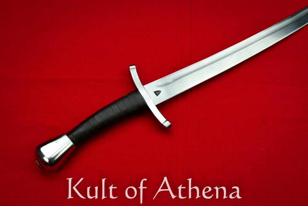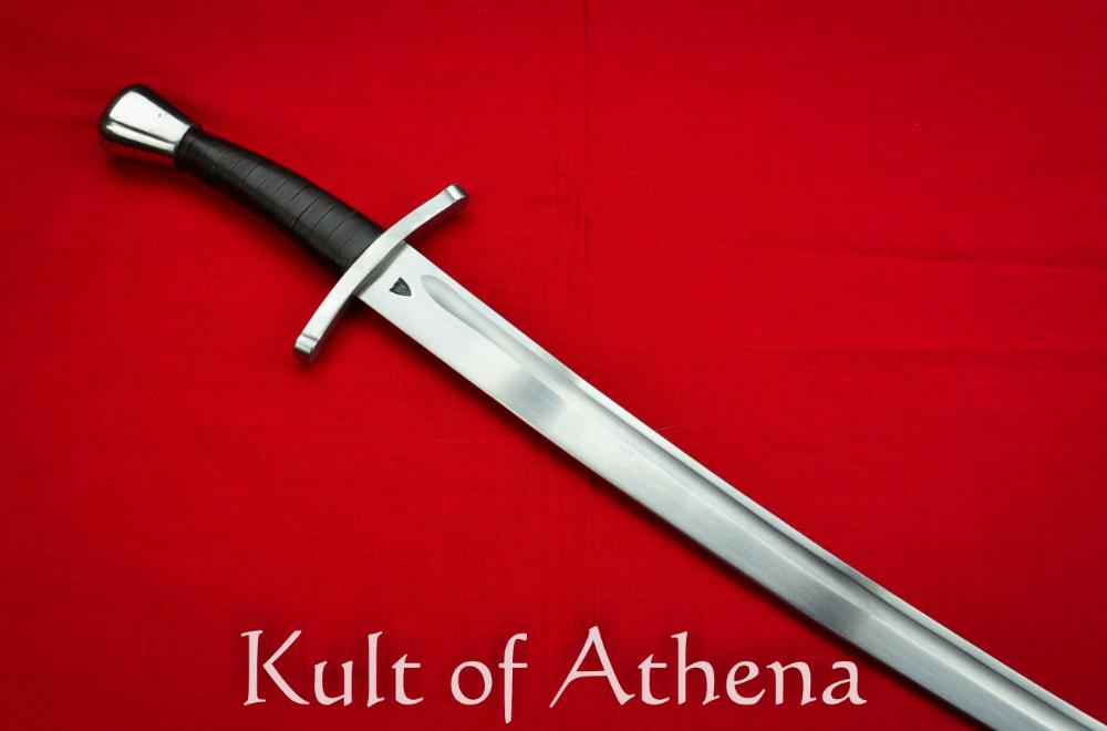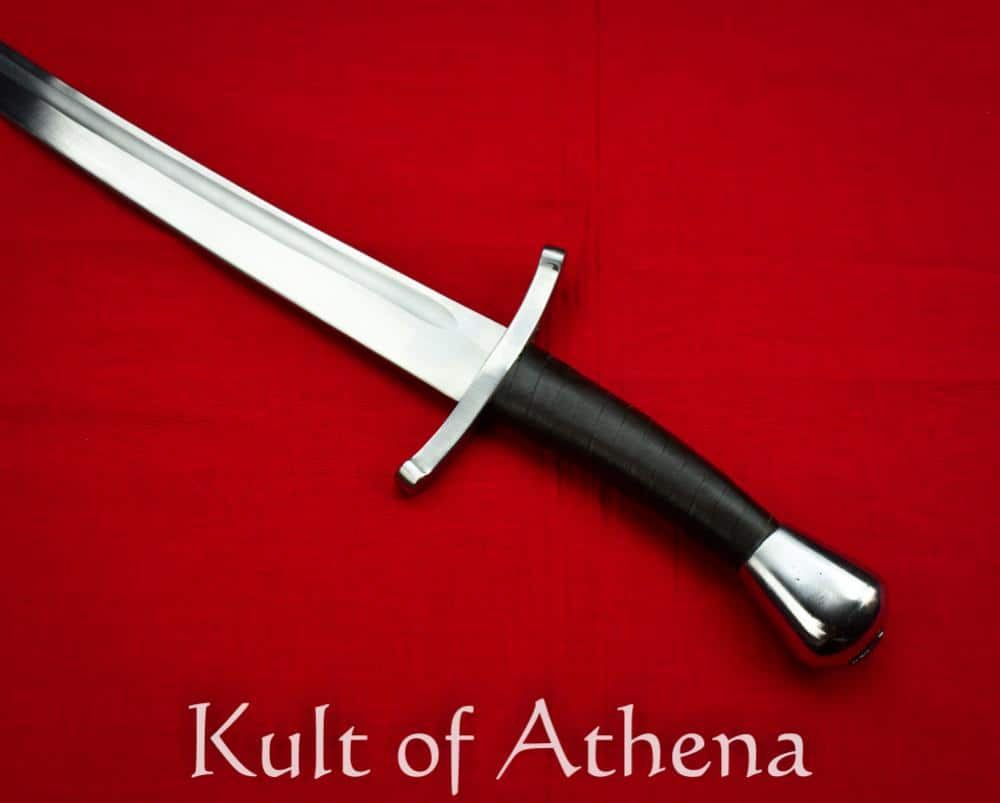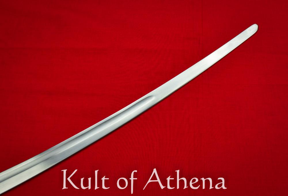 The blade measures 29 1/2 inches and is forged from CRV4 / 51CrV4 high carbon spring steel, a material valued for its excellent toughness and flexibility. Designed for safe training and reenactment, the blade features blunted edges approximately 2–3 mm thick and a rounded tip. Tempered to roughly 50–54 HRc, the blade is capable of absorbing repeated blade contact without becoming brittle or losing its lively handling qualities.