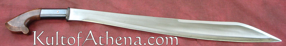 The forward sloping, thick blade of the Visayan Binagon is clearly intended to chop with efficiency. By utilizing forward sloping geometry and a wide impact point, the Binagon will hack and slice through brush and foe alike. Though its emphasis is on chopping, the blade terminates into a tip that can be used to pierce a foe. It is most popular in the Visayan region of the Central Philippines.