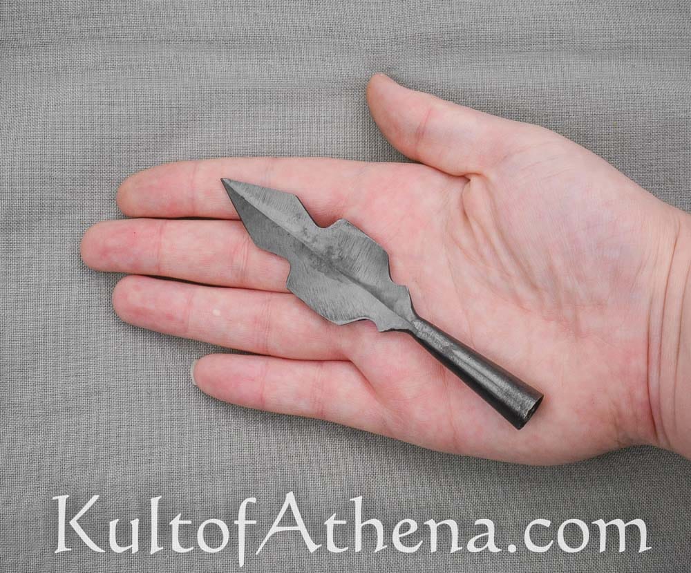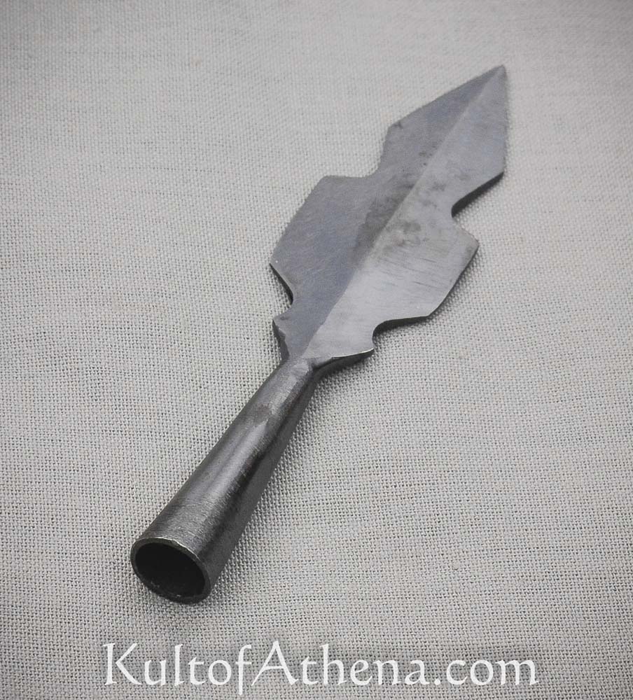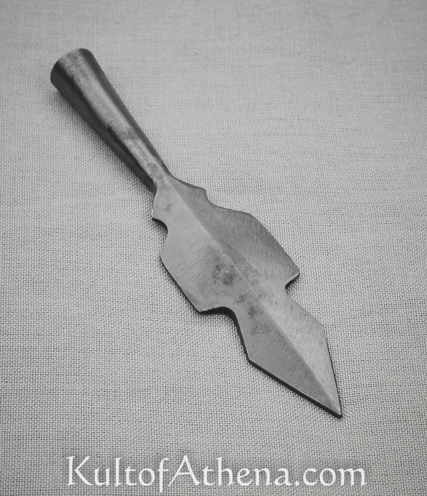 This blackened arrowhead tip is crafted from blackened steel and is ready to be mounted onto your own arrow shaft.