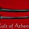 Like the Cutlasses of the Age of Sail, this sword excels in delivering powerful blows in close quarters combat in crowded or confined spaces. While optimized for hard-hitting strikes and chops, its clipped point gives it respectable thrusting ability as well. The sword is made to withstand a great deal of shock and hard hits with its thick, full length tang which is solidly riveted to the end of the grip and the grip itself is reinforced with a triple nut assembly. The grip is darkened wood to match the sleek aesthetic of the sword and included is a sheath of thick and tough leather with a blackened steel chape and a swiveling belt loop. Also included is a manufacturers production certificate.