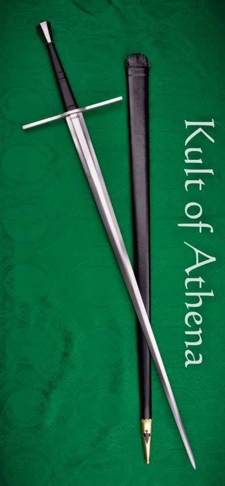 Royal Armouries Sword #IX.16. This is a reproduction of an early 15th-century longsword, believed to have been found in the River Thames before finding its way into the Tower of London collection. Part of the Royal Armouries Collection by Windlass, the original dates to around 1400-1430. This is a hand-and-a-half sword. The stiff and acutely-tapered blade ends in a robust but slender point. This type of sword was used in one or two hands, depending on circumstance, and in armored combat, the blade could also be gripped in half swording, to better drive the point into the gaps of an armored opponent, and also to use the crossguard and pommel for wrestling and striking. This is the type of sword that English knights would have carried at the Battle of Agincourt. The blade of this sword has three transitions, from a hollow ground blunt ricasso next to the guard to a hexagonal cross-section, and finally to the flattened diamond section point. A relatively nimble sword, but with more blade presence than you might expect.