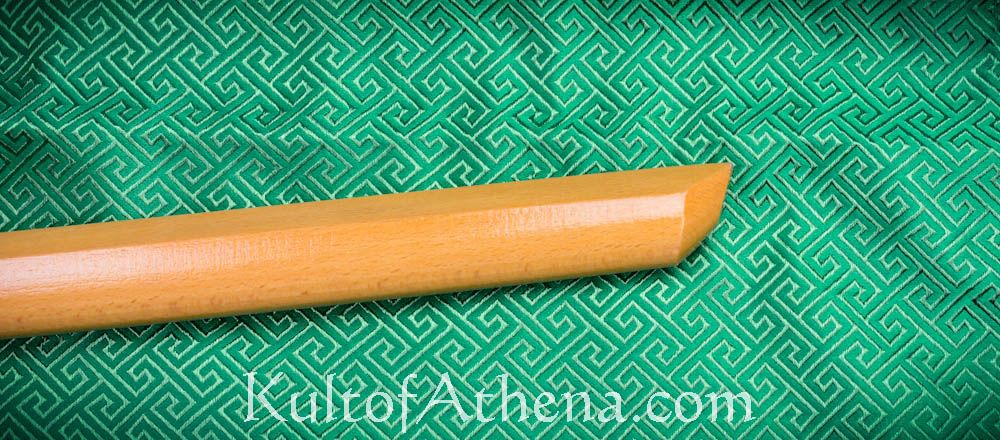 This bokken is made from stout wood and is a ready tool for the practice and mastery of the Japanese martial arts. The tsuba guard is hard plastic and it is held in place with a rubber habaki retainer. A grip wrap of cord completes this wooden practice sword.