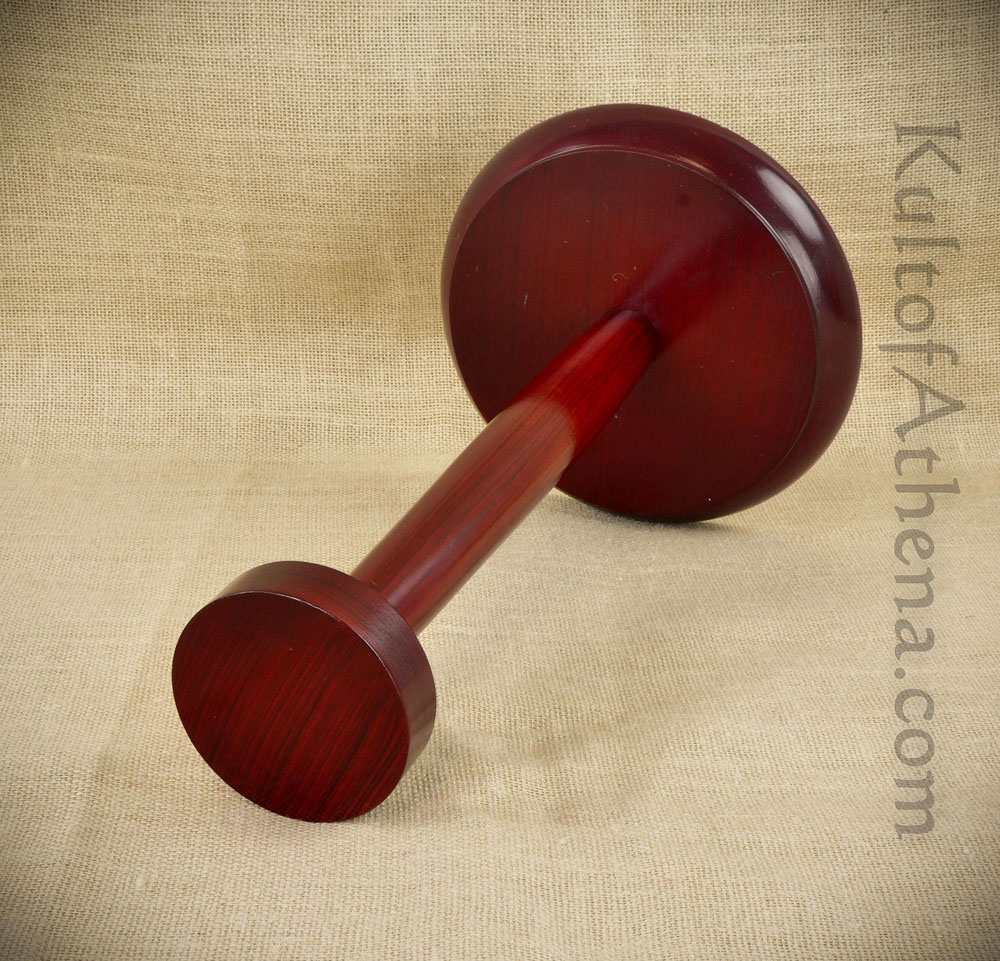 This Helmet Stand is crafted from formed wood and given a cherry wood finish. It is comprised of three parts which ship unassembled; integrated screws in the stand allow for easy assembly.