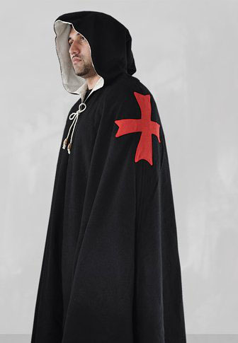The Knight Templar`s cloak, with its distinctive red cross, was an instantly recognizable garment in the Crusades era. This hooded reconstruction is crafted in pure wool with a full linen lining.