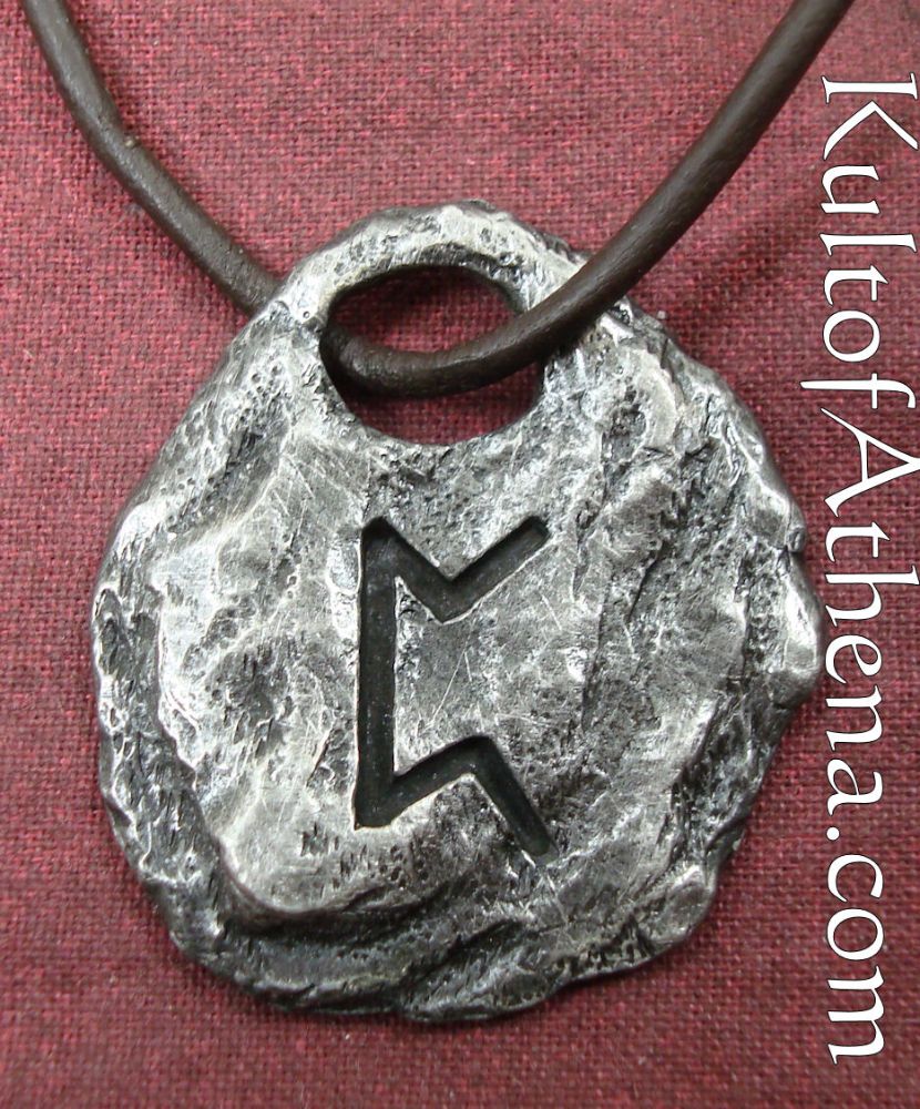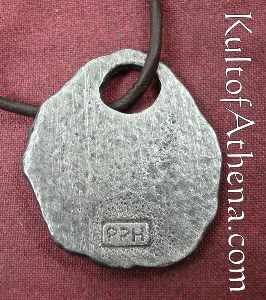 This Rune of the Scandinavian Elder Futhark runic alphabet is Pertho – a symbol of the Peach tree or Peach Wood. It is a particularly enigmatic rune, and the reference to the Peach wood may be a tie-in to a wood instrument or game board made from the wood – and therefore a shorthand inference for all the intricacies and symbolism in music and in game.  Rune pendant is made from tin and patinated for an antiqued appearance. Comes with a leather neck thong.
